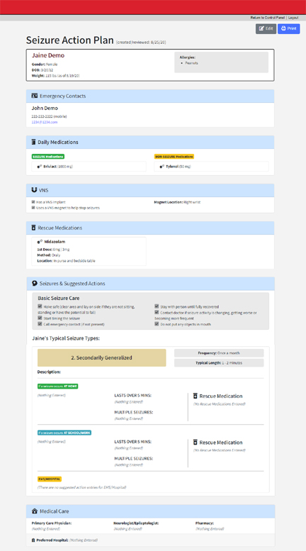 The Seizure Tracker "Dynamic Seizure Action Plan" (DSAP) is an easy way to collect and share your prefferred action to be taken in case of a seizure emergency.